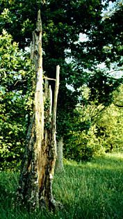 The trees have usually been dead for quite a while, so they have to be structurally sound, have a good "bone" structure, and reveal a shape which sparks my imagination and talks to me. They are beech broken off in a storm, except bottom left, which is two laburnum trunks intertwined and held together by ivy. |